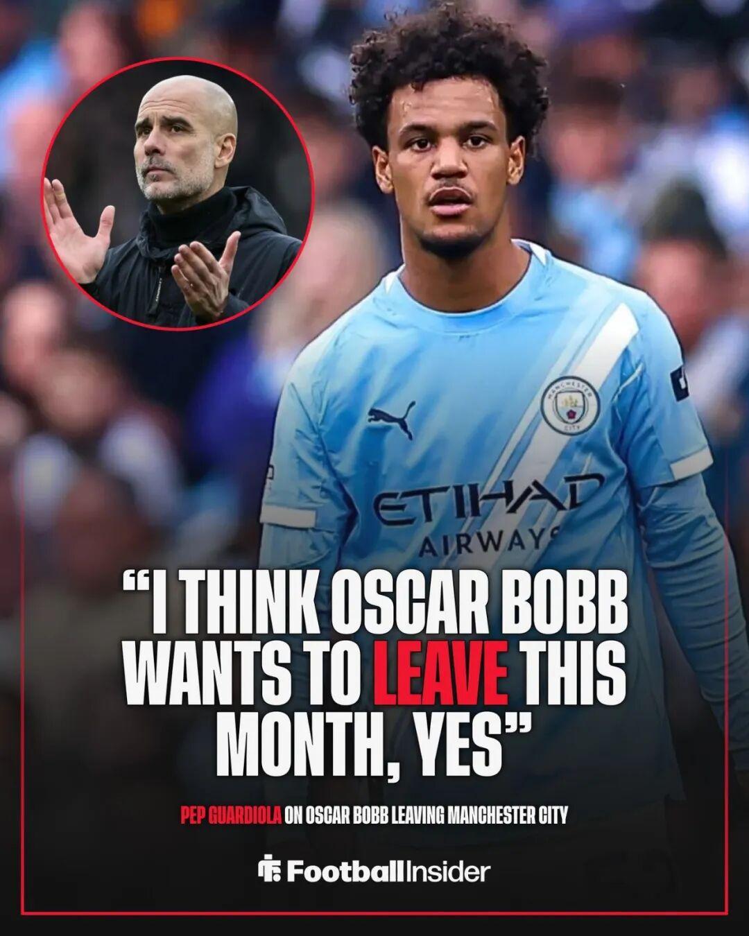 瓜迪奥拉无法确定转会是否会在本月发生,但坦率谈到了球员希望离开伊蒂哈德球场的意愿。在曼城2-0击败狼队后,有记者问到关于奥斯卡·鲍勃未来的话题。瓜迪奥拉表示:“我还不知道。我知道有传闻,也知道有谈判,但目前没有定论。”当被直接问及奥斯卡·鲍勃是否想离开时,瓜迪奥拉在离开发布会前回应:“我想是的。”