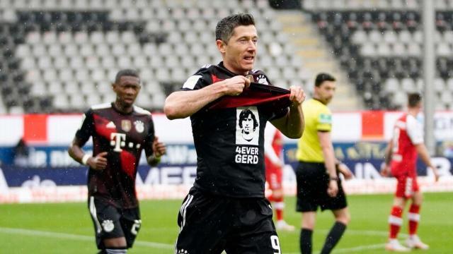 427次德甲出场,盖德·穆勒轰入365球,7次拿到象征最佳射手的小钢炮,这是至今无人能及的纪录。莱万上赛季的41个进球,打破了穆勒在1971-72赛季创造的40球单赛季纪录。德国足球圈在惊叹莱万的神勇之余,也为穆勒49年后失去这项尘封的纪录而扼腕,因为他“德国历史第一前锋”的地位实在过于深入人心。就连莱万也在打入追平盖德的第40球后,露出“盖德永恒”的字样,向传奇致敬。与轰炸机并肩战斗多年的足球皇帝贝肯鲍尔表示:“我们那个时代,盖德·穆勒每场比赛都是被对手盯人防守,包夹也是司空见惯,如果换做区域防守的今天,盖德可以进更多球。”